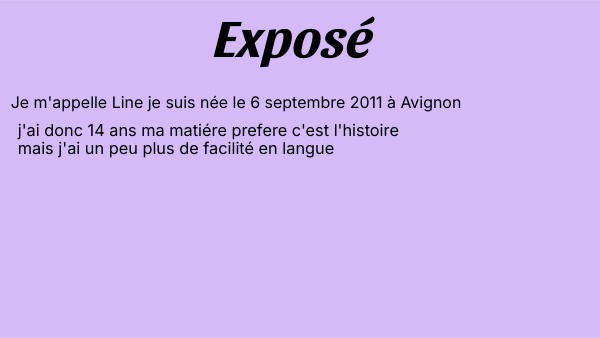 Je m'appelle Line je suis née le 6 septembre 2011 à Avignon