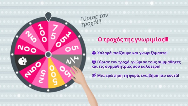 😎 Χαλαρά, παίζουμε και γνωριζόμαστε!🎡 Γύρισε τον τροχό, γνώρισε τους συμμαθητές και τις συμμαθήτριές σου καλύτερα! 🎯 Μια ερώτηση τη φορά, ένα βήμα πιο κοντά!