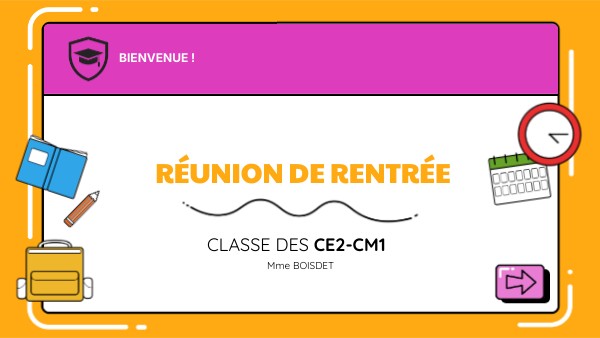 - Le cahier de liaison (petit cahier jaune) - Le cahier du jour (petit cahier bleu) - Le cahier de brouillon - Le cahier de leçons de français (petit cahier blanc) - Le cahier d'orthographe (petit cahier rose) - Le cahier de chants et poésies (grand cahier violet) - Pochette de français (bleu) - Pochette de mathématiques (rose) - Pochette d'arts visuels (violet) - Porte- vues (Histoire-Géographie-Sciences) - Anglais (pochette orange pour les CE2 et cahier de l'année précédente pour les CM1)