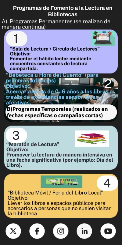 “Bebeteca u Hora del Cuento” (para primeras infancias)Objetivo: Acercar a niños de 0–6 años a los libros a través de experiencias sensoriales y afectivas.