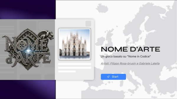 Nome d’Arte è un gioco di società di squadra, basato su parole e associazioni mentali. Ispirato al gioco Nome in Codice, combina elementi educativi e ludici: i giocatori devono far indovinare termini legati all’arte romanica e gotica usando indizi associativi. È anche un gioco didattico, pensato per favorire l’apprendimento del lessico artistico e dei concetti storici in modo divertente e interattivo.