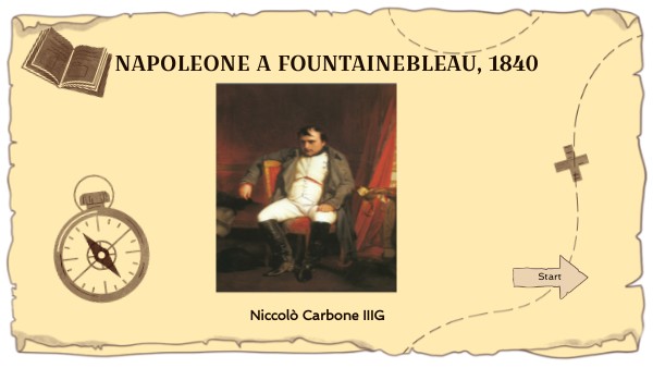 Questa immagine rappresenta Napoleone a Fountainebleau che fu costretto ad abdicare, cioè a rinunciare volontariamente al trono in favore di Luigi XVIII (fratello minore del re ghigliottinato nel 1793), e a ritirarsi nell'isola d'Elba. La sua espressione del volto è delusa e triste perché dovette rinunciare al trono, questo gli provocò una forte delusione, infatti nell'immagine Napoleone è accasciato sulla sedia. Quest'opera vuole significare che anche un uomo molto forte di fronte a certe difficoltà diventa un uomo fragile. Un'opera di questo genere ha lo scopo di rappresentare gli eventi storici che ha attraversato il personaggio ma soprattutto gli stati d'animo che sta passando in quel momento.