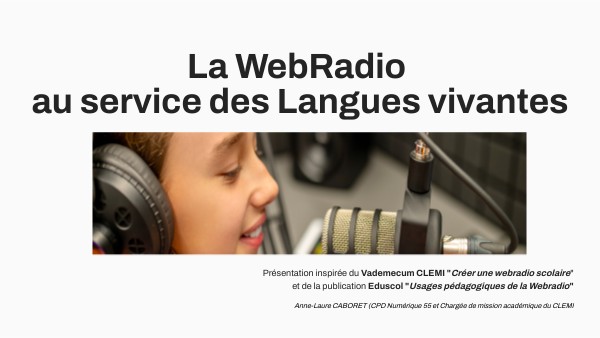 et de la publication Eduscol "Usages pédagogiques de la Webradio"