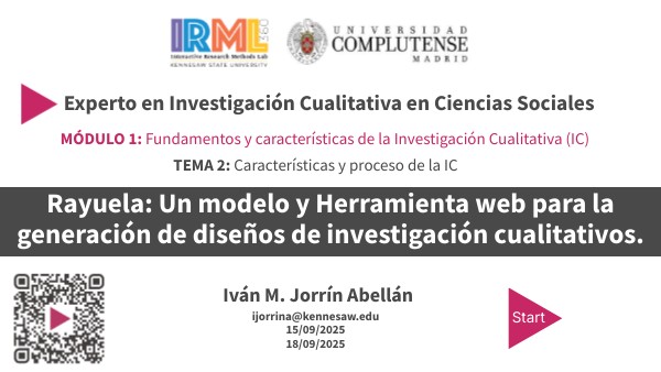 - Presentar los orígenes, evolución y características de Rayuela, un modelo teórico y suite de herramientas web para la generación de diseños de investigación en educación (nos centraremos en las cualitativas).