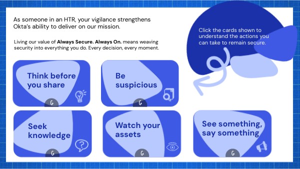 As someone in an HTR, your vigilance strengthens Okta’s ability to deliver on our mission.
