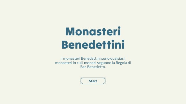 San Benedetto era un monaco che inventò i Monasteri Benedettini creando una regola di come dovevano vivere i monaci all'interno di questi monasteri. Un giorno decise di andare a vivere da solo in una grotta, per pregare in silenzio e stare vicino a Dio. Quella grotta si chiamava Sacro Speco. Lì lui stava da solo, pregava, leggeva la Bibbia, non parlava quasi mai. Era un posto piccolo e buio, ma a lui andava bene così. Ma poi arrivarono degli uomini giovani che gli dissero che volevano vivere come lui, allora San Benedetto ha fatto costruire 12 piccoli monasteri, uno vicino all’altro, tutti sulle montagne. Erano come 12 casette per pregare, leggere, lavorare e dormire in pace.