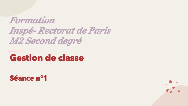 1ère séance : Les interventions préventives de l’enseignant pour gérer sa classe