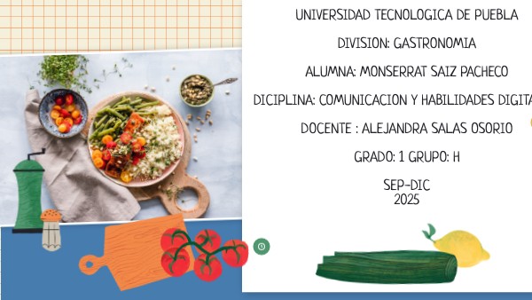 universidad tecnologica de puebla DIVISION: GASTRONOMIA ALUMNA: MONSERRAT SAIZ PACHECO DICIPLINA: COMUNICACION Y HABILIDADES DIGITALES DOCENTE : ALEJANDRA SALAS OSORIO GRADO: 1 GRUPO: H SEP-DIC 2025