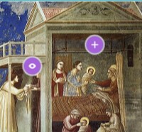 - Giotto rappresenta la nascita di Gesù, è interessante notare la naturalezza con cui esprime tale evento attraverso il gesto delle braccia tese della Madre che si sporge in avanti per prenderlo in braccio.
