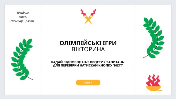 Надай відповіді на 5 простих запитань. Для перевірки натискай кнопку "NEXT"