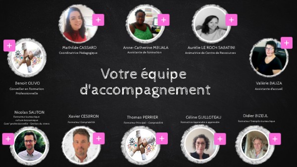 Je suis votre progression générale et vous accompagne dans votre parcours de formation. J'anime les séances de formation professionnelle en comptabilité.