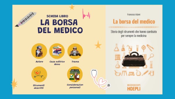 l libro racconta la nascita di dieci strumenti della medicina, delle persone che li hanno scoperti e soprattutto dell'impatto che hanno avuto sulla storia dell’uomo. Non conoscevo molti degli strumenti medici descritti nel libro e ho potuto imparare non solo a cosa servono ma anche come sono stati scoperti. Uno potrebbe pensare che un libro di medicina sia noioso ma questo non lo è stato assolutamente perchè non parla solo di scienza ma anche di storia, arte e musica. Mi ha colpito la scoperta della siringa che prende il nome dalla ninfa che il Dio Pan trasformò in canna e i riferimenti a Sherlock Holmes, ai Pink Floyde e ai Beatles. In conclusione posso dire che è un libro molto interessante e conivolgente che consiglio ai ragazzi che vogliono scoprire strumenti medici senza annoiarsi con una lettura "troppo scentifica".