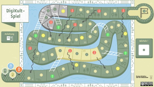 - Nach dem Ziehen der Spielfigur auf das entsprechende Feld wird die Frage vorgelesen und beantwortet (Richtwert: 30s).Es darf auch eine kleine Diskussion entstehen (Richtwert: 2min).