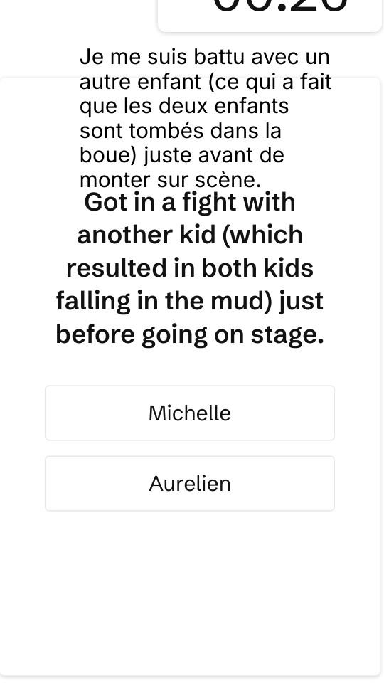 Je me suis battu avec un autre enfant (ce qui a fait que les deux enfants sont tombés dans la boue) juste avant de monter sur scène.