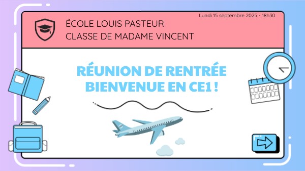 RÉUNION DE RENTRÉE BIENVENUE EN CE1 !