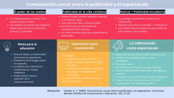 Fuente, A. V. (1998). Comunicación social: entre la publicidad y el espectáculo. Comunicar: Revista Científica de Comunicación y Educación, (10), 13-20.