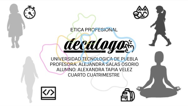 En este documento se muestra un decalogo etico personal, donde se perciben lo que es mi persona, mis valores y principios, lo que estoy dispuesta a llegar y pretendo alcanzar en un futuro cercano y lejano.