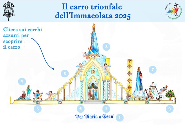 Il carro dell’Immacolata 2025 è dunque, ancora una volta, una catechesi in forma d’arte, che ci invita a camminare come Maria, donna di speranza, per giungere a Cristo, nostra meta e nostra salvezza.