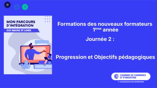 La progression annuelle par matière, construite par des formateurs de la CCI est une "feuille de route » . La progression représente le découpage en séquence d’apprentissage du programme visant une montée en compétences par étape. C’est un outil indispensable et structurant pour le formateur.