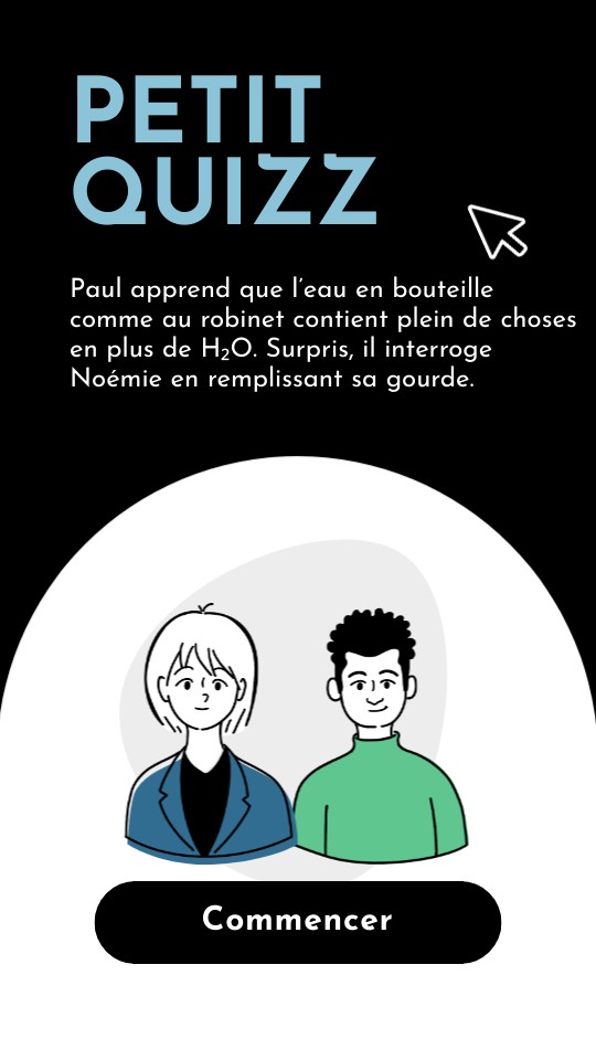 Paul : Noémie… tu vas trouver ça bête, mais je viens de lire qu’il n’y a presque jamais que du “H₂O pur” dans nos verres. Pourtant, elle a l’air super claire… c’est vrai qu’il y a plein d’autres trucs dedans ?
