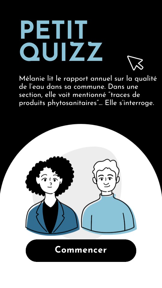 Mélanie lit le rapport annuel sur la qualité de l’eau dans sa commune. Dans une section, elle voit mentionné “traces de produits phytosanitaires”… Elle s’interroge.