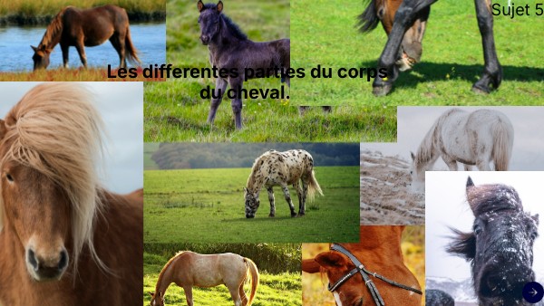 Structure: - Introduction: Le cheval et sa nature. - Développement: - Les differentes parties du cheval. - Conclusion: Les spécificité du cheval par rapport à l'être humain.