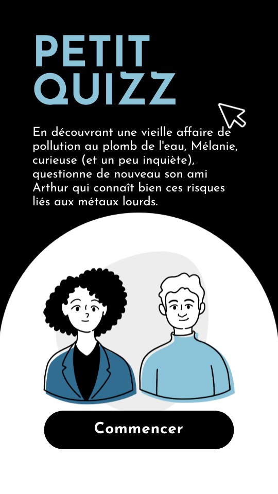En découvrant une vieille affaire de pollution au plomb de l'eau, Mélanie, curieuse (et un peu inquiète), questionne de nouveau son ami Arthur qui connaît bien ces risques liés aux métaux lourds.