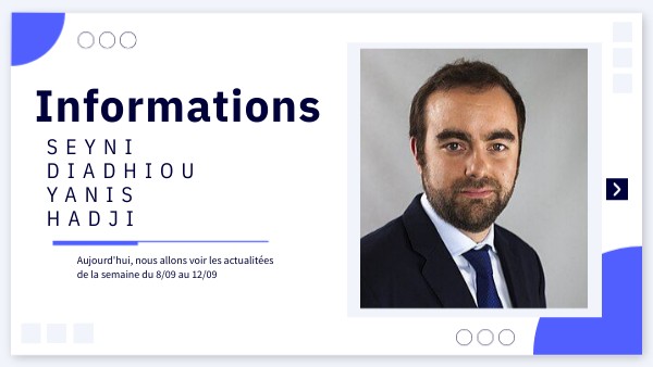 Aujourd'hui, nous allons voir les actualitées de la semaine du 8/09 au 12/09