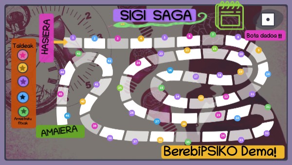 - Lila: Galdera/Hausnarketa irekia. 30 segundo pentsatzeko. Hausnarketarako tarte malgua.