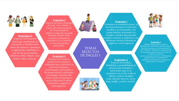 Progresión 6Expresa información adicional, facilitando la transición y fluidez entre ideas de manera coherente y organizada, mediante el uso de los pronombres relativos (who, which, that, where, when, whose).