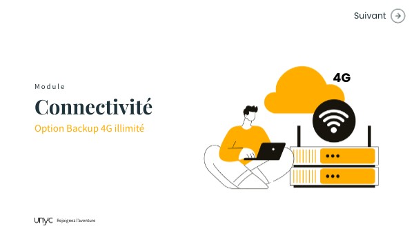 L’option backup 4G illimité est exclusivement disponible sur les routeurs unyc validés dans l’administration des routeurs et compatibles 4G avec une SIM unyc (hors eSIM)