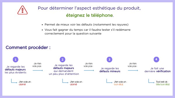 Pour déterminer l'aspect esthétique du produit, éteignez le téléphone.