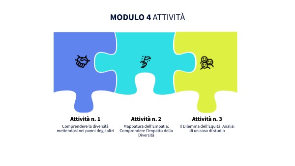 L’obiettivo di questa attività è aiutare i partecipanti a individuare le problematiche legate all’equità in ambito educativo ed esplorare soluzioni pratiche per garantire a tutti gli studenti pari opportunità di successo.