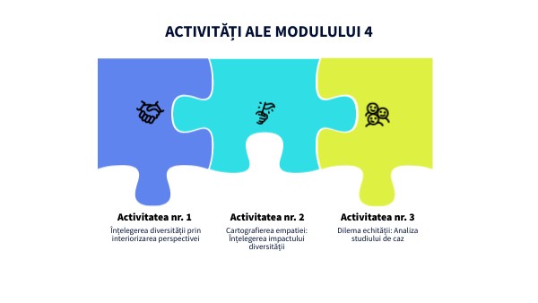 - Această activitate implică utilizarea învățării experiențiale, a discuțiilor de grup și a tehnicilor de cartografiere a empatiei.