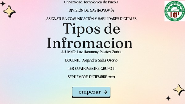 Universidad Tecnologica de Puebla DIVISIÓN DE GASTRONOMÍA ASIGNATURA:COMUNICACIÓN Y HABILIDADES DIGITALES ALUMNO: Luz Harummy Palafox Zurita DOCENTE :Alejandra Salas Osorio 1ER CUATRIMESTRE GRUPO I SEPTIEMBRE-DICIEMBRE 2025