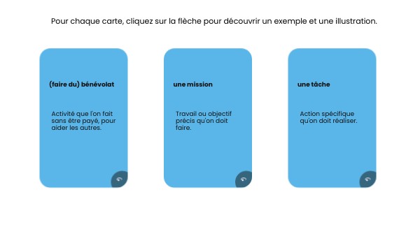 Pour chaque carte, cliquez sur la flèche pour découvrir un exemple et une illustration.