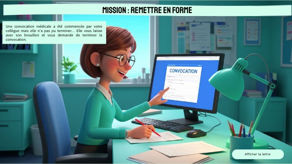 Une convocation médicale a été commencée par votre collègue mais elle n'a pas pu terminer… Elle vous laisse avec son brouillon et vous demande de terminer la convocation.