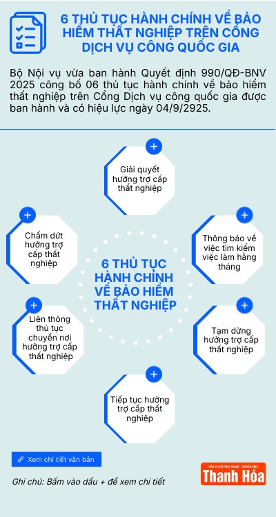 Bộ Nội vụ vừa ban hành Quyết định 990/QĐ-BNV 2025 công bố 06 thủ tục hành chính về bảo hiểm thất nghiệp trên Cổng Dịch vụ công quốc gia được ban hành và có hiệu lực ngày 04/9/2925.