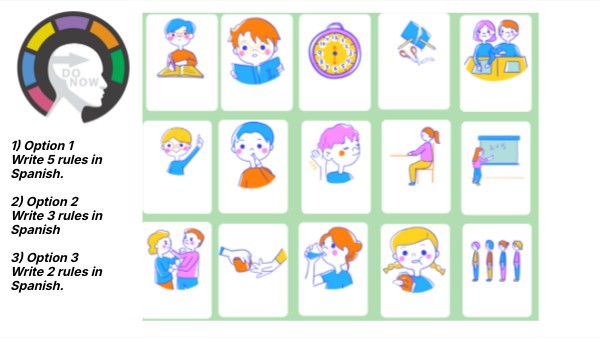 1) Option 1 Write 5 rules in Spanish. 2) Option 2 Write 3 rules in Spanish 3) Option 3 Write 2 rules in Spanish.