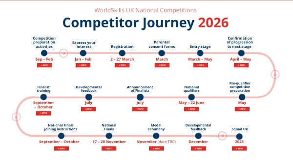 Timeline of events for learners competing in the WorldSkills UK National Competitions