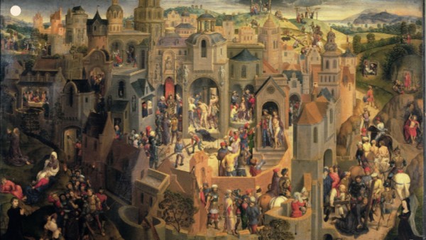 Hans Memling, "La Passione di Cristo", Galleria Sabauda di Torino. Le scene della Passione di Gesù sono ambientate in una Gerualemme immagin