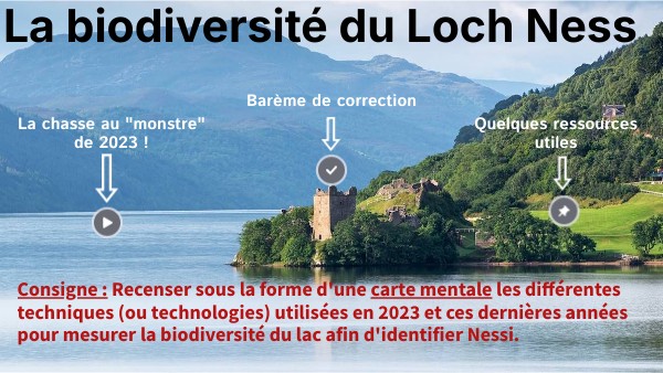 Consigne : Recenser sous la forme d'une carte mentale les différentes techniques (ou technologies) utilisées en 2023 et ces dernières années pour mesurer la biodiversité du lac afin d'identifier Nessi.