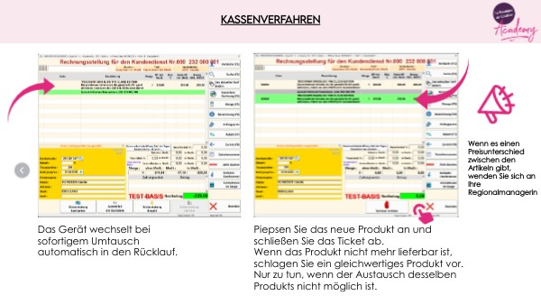 Wenn es einen Preisunterschied zwischen den Artikeln gibt, wenden Sie sich an Ihre Regionalmanagerin