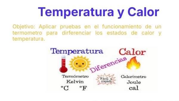 Objetivo: Aplicar pruebas en el funcionamiento de un termometro para dirferenciar los estados de calor y temperatura.