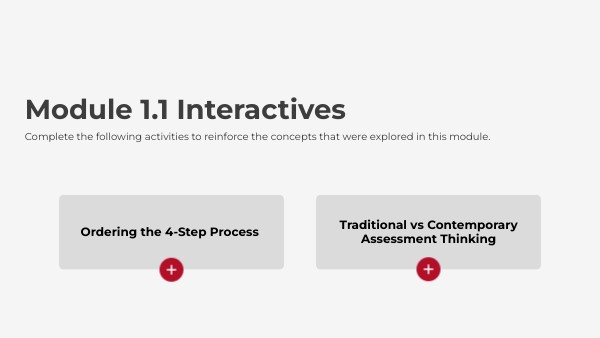 Review each flipcard and decide whether the statement reflects a Traditional or Contemporary assessment approach. Then, flip the card to check your answer. Continue this process until you have gone through the entire deck.
