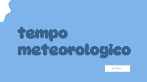 Il tempo meteorologico (o meteo) si riferisce alle condizioni dell'atmosfera in un determinato luogo e in un breve lasso di tempo, come temperatura dell'aria, pressione atmosferica, umidità, nuvolosità e vento, che determinano fenomeni come pioggia, neve o sole.