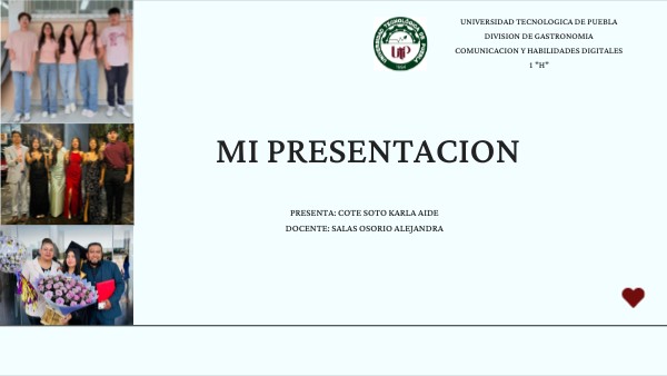 UNIVERSIDAD TECNOLOGICA DE PUEBLA DIVISION DE GASTRONOMIA COMUNICACION Y HABILIDADES DIGITALES 1 "H"