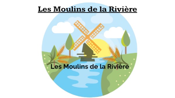 Voici le nouveau logo de l'entreprise. C'est un logo assez visible, il y a le nom de l'entreprise écrit en bas du logo en noir. Un fond effacé avec une rivière. Un moulin au centre et des épis de blés au deux extrémités du nom de l'entreprise. Le logo est assez coloré, les couleurs principals sont le vert, le jaune et le bleu.