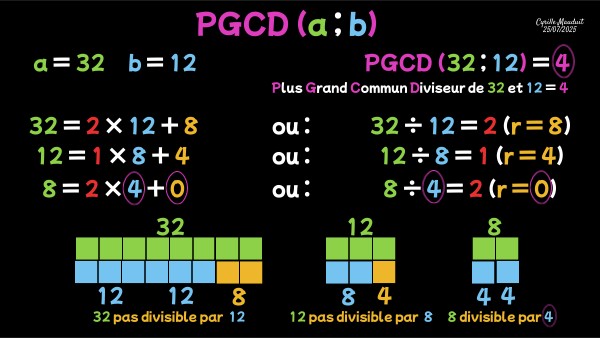PGCD (32 ; 12) = 4