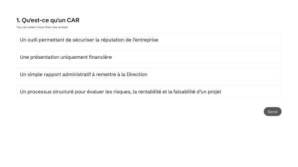 Si tu as besoin d’exemples récents de CAR, n’hésite pas à contacter le service juridique. Tu peux maintenant quitter la formation.